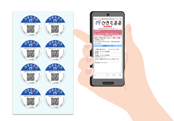 また、シールのQRコードをスマホのカメラで読み込み連絡用画面の確認をお願いします。